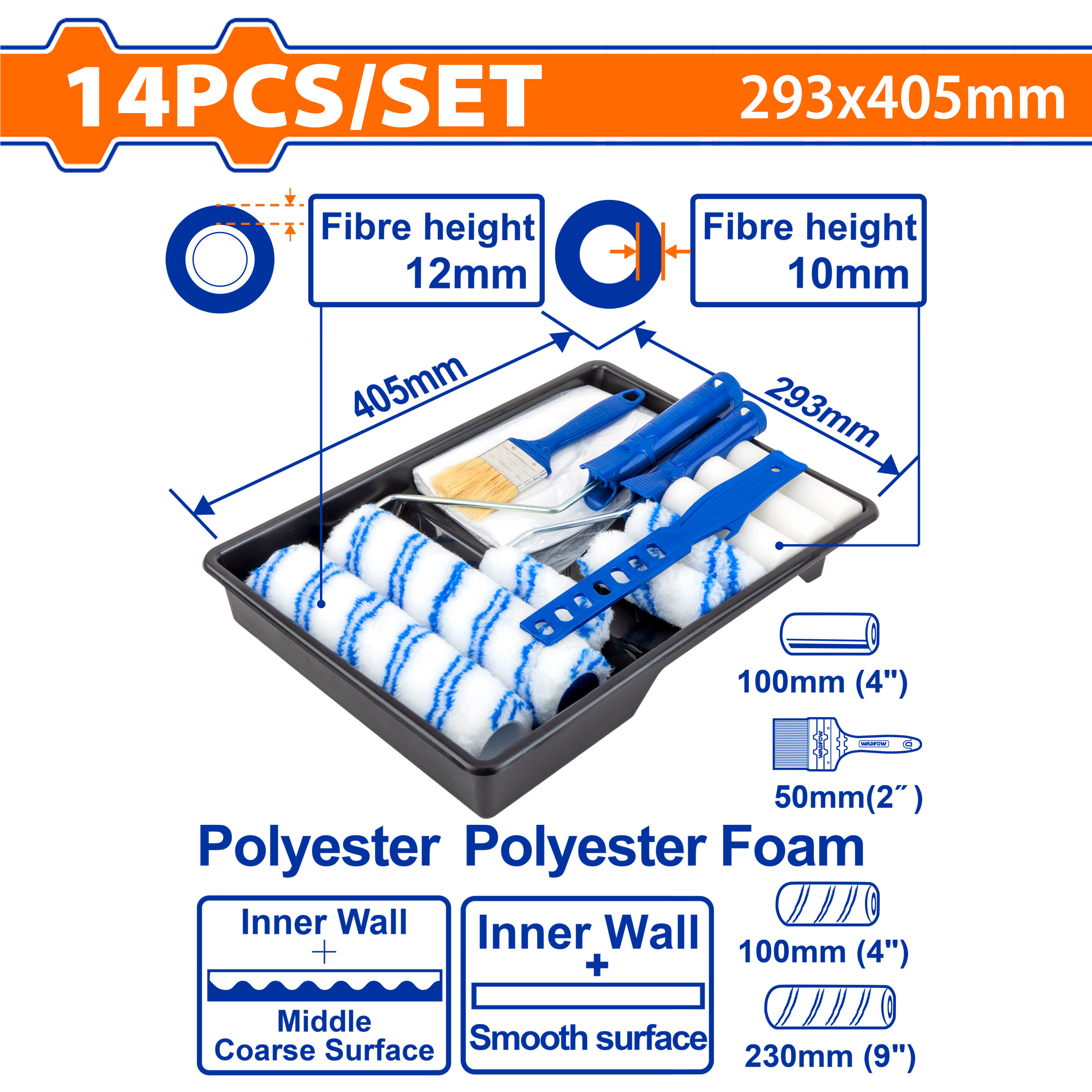 2pcs x 230mm (9") 12mm polyester roller covers