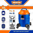 Wadfow 30 Liters Wet & Dry Vacuum Cleaner Capacity Household Floor Cleaning Tools 1200W