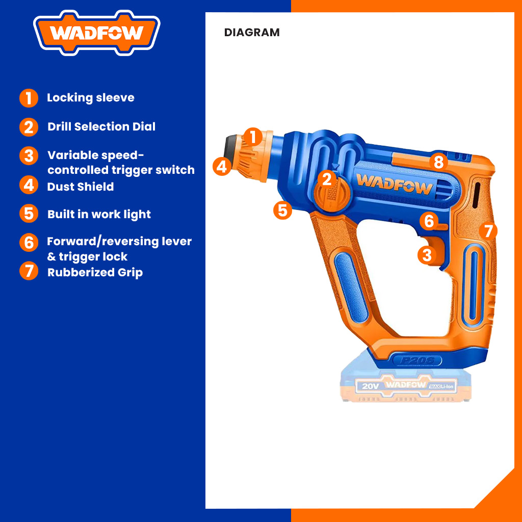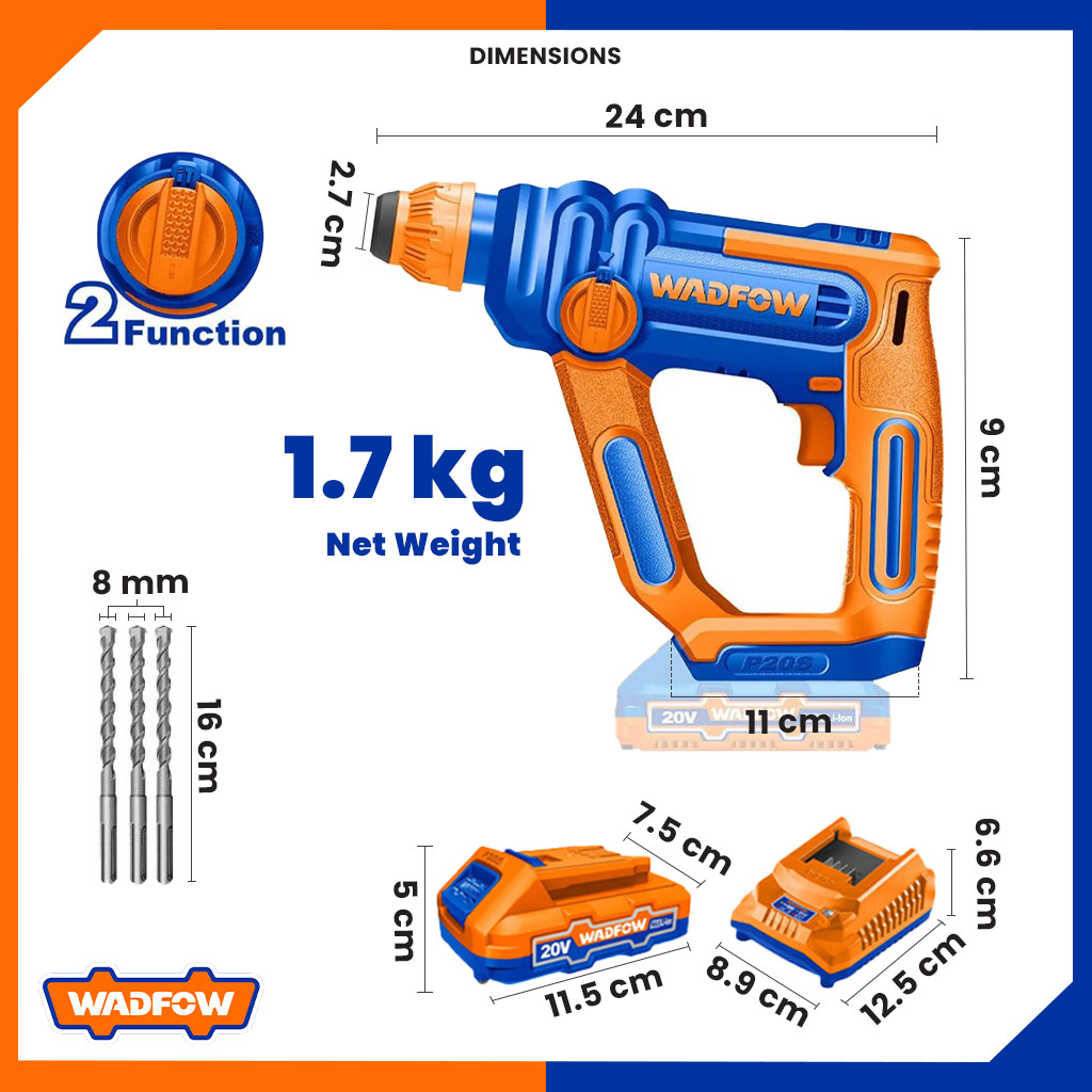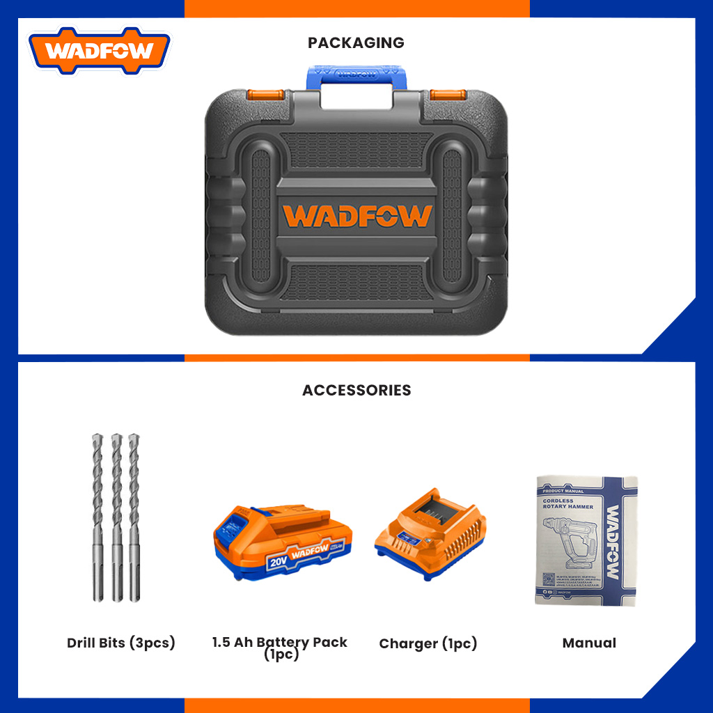 Wadfow P20 Series Lithium-Ion 20V Cordless Rotary Hammer WLM1516 | WLM1B161 (WCT)