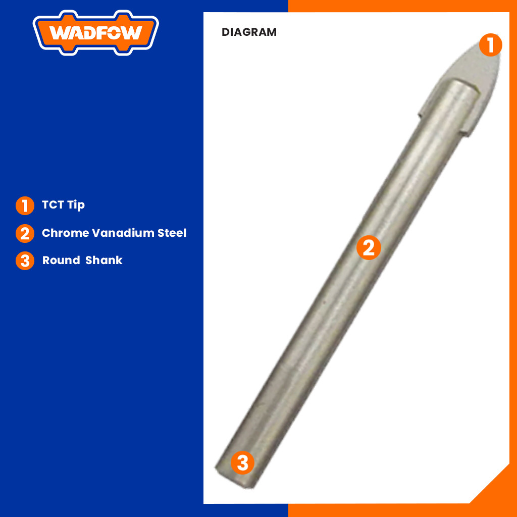 Wadfow Chrome-Vanadium Steel Tile and Glass Drill Bit (WHT)
