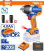 Wadfow by Winland P20S/20V Brushless Motor Lithium-Ion Cordless Impact Wrench 780NM WCD1B78 WAD-CT