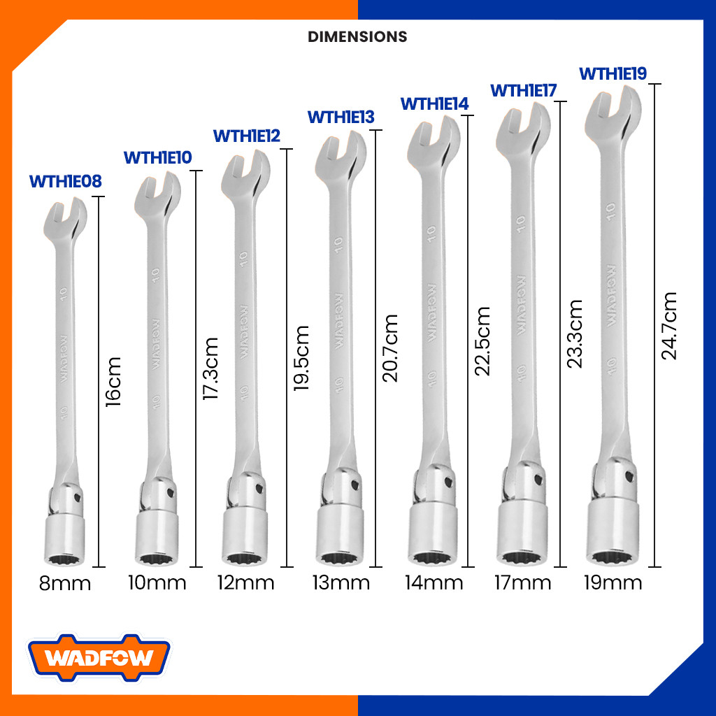 Wadfow Carbon Steel Heat treated Open End Swivel Head Socket Spanner Wrench WTH1E (WHT)